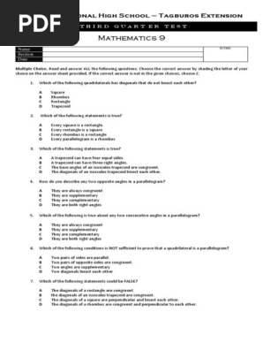 Grade 9 Math Third Quarter Examination Rectangle Elementary Geometry